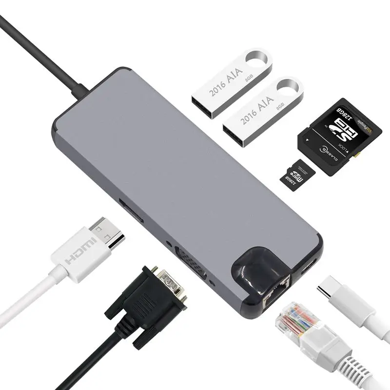 Best Chance for USB C Hub HDMI VGA Ethernet Lan RJ45 Adapter for Macbook Pro Type C hub Card Reader 2 USB 3.0 + Typ